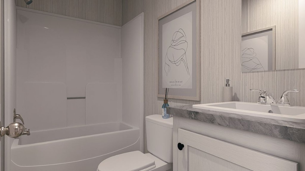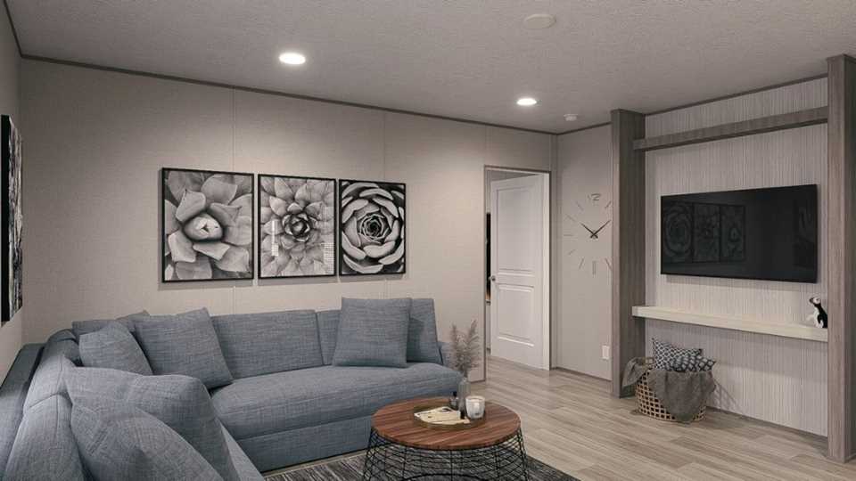The Clayton Maynardville Classic 56 is a Single-Wide 877 square-foot manufactured home. It is part of the Maynardville Classic series and features modern interior amenities like stainless steel appliances, linoleum flooring, a kitchen island, and an ecobee smart thermostat.