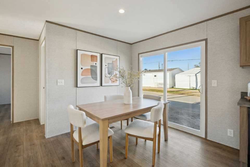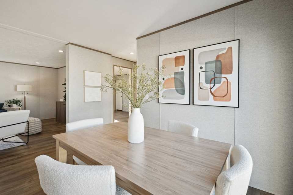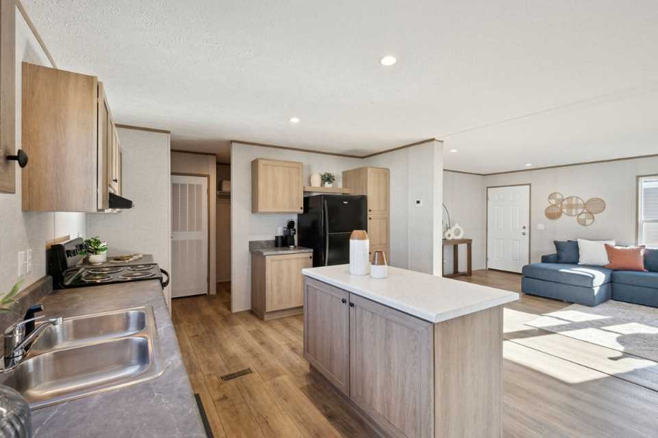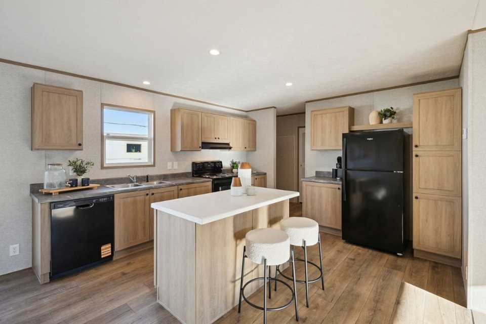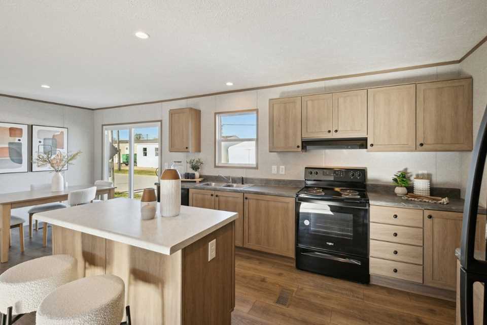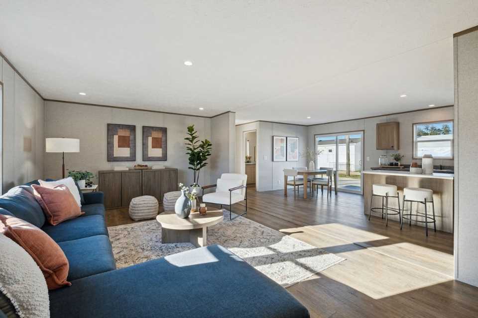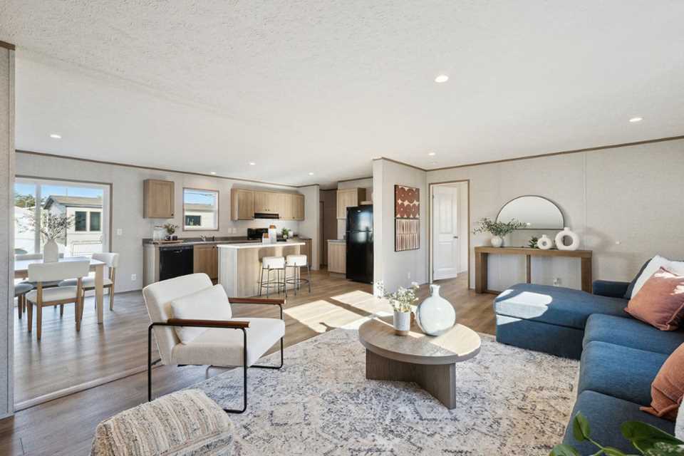 An exceptional and budget-friendly manufactured home that blends style, comfort, and functionality into the ideal living space. With 1,493 sq. ft. of beautifully designed space, this home features 3 bedrooms and 2 bathrooms, offering plenty of room for your family. Its open-concept layout effortlessly connects the living room, dining area, and kitchen, creating the perfect setting for both entertaining and family time. Modern touches like white cabinets, energy-efficient appliances, durable vinyl flooring, and high-quality insulation ensure a low-maintenance and cost-efficient lifestyle.